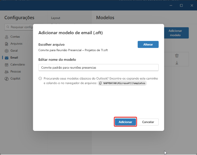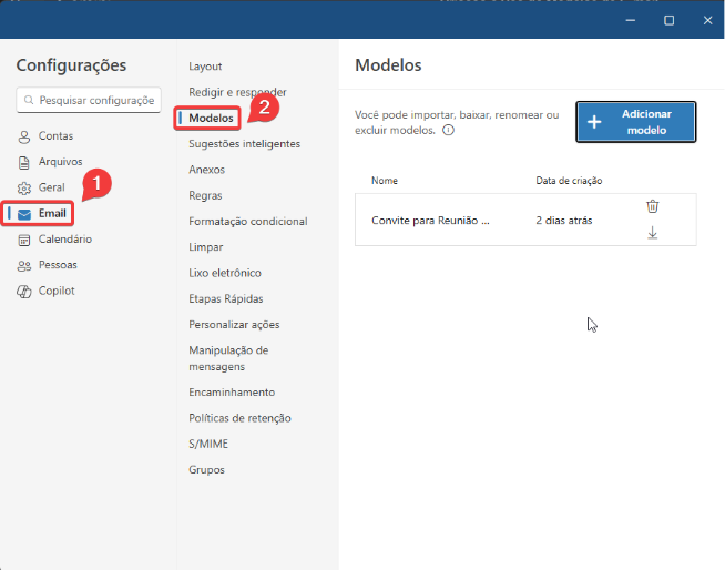 Modelos de email no Outlook