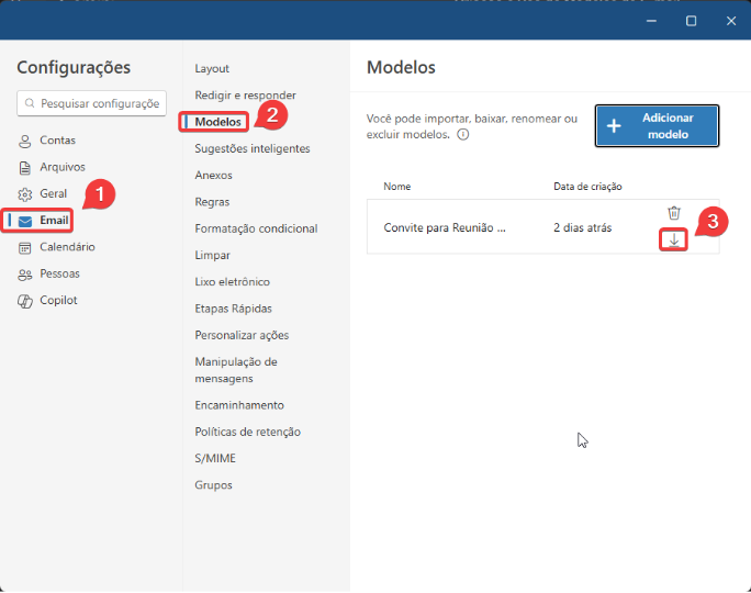Figura 05 – Localização do botão de Download de um modelo de email