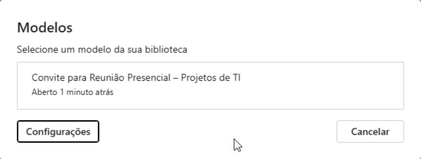 Na janela que se abrirá você poderá ver quais são os modelos salvos e utilizá-los!