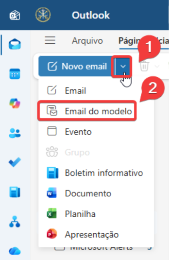 1. Na guia Página Inicial, no grupo Novo email, clique na setinha para baixo (v);
