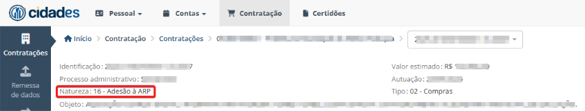 Figura 03 – Tela com os dados de contratações no CidadES