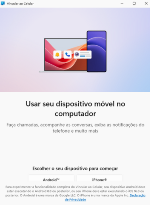 O Vincular ao Celular (ou Phone Link) do Windows é um aplicativo que conecta seu smartphone (Android ou iPhone) diretamente ao seu computador. De forma prática, ele permite que você faça chamadas, troque mensagens, veja notificações e acesse suas fotos recentes na tela do PC, sem precisar pegar o celular.