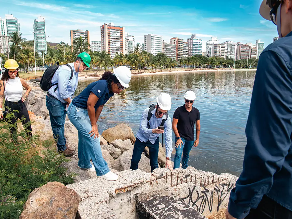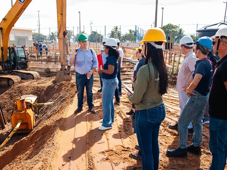 Na visita técnica realizada pelo TCE-ES em fevereiro, estiveram presentes os técnicos responsáveis pelas duas Secretarias Municipais e também da Cesan, além de representantes da empresa responsável pela obra e de apoio ao gerenciamento da Secretaria de Obras.